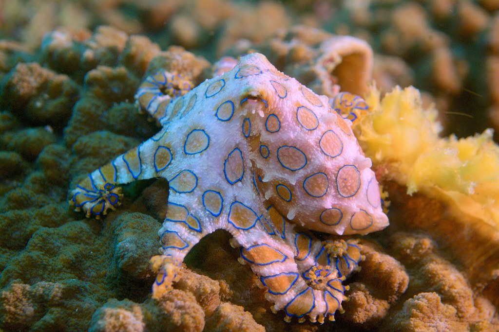 Dato curioso: Su veneno contiene tetrodotoxina, un químico tan poderoso que podría paralizar a 10 adultos humanos en pocos minutos.